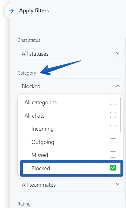 Our blacklist feature allows you to see all conversations with clients who were blocked by your agents.