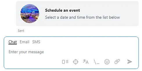 To create a schedule and send it in chat, click "Schedule an event" during an Apple Business Chat conversation.