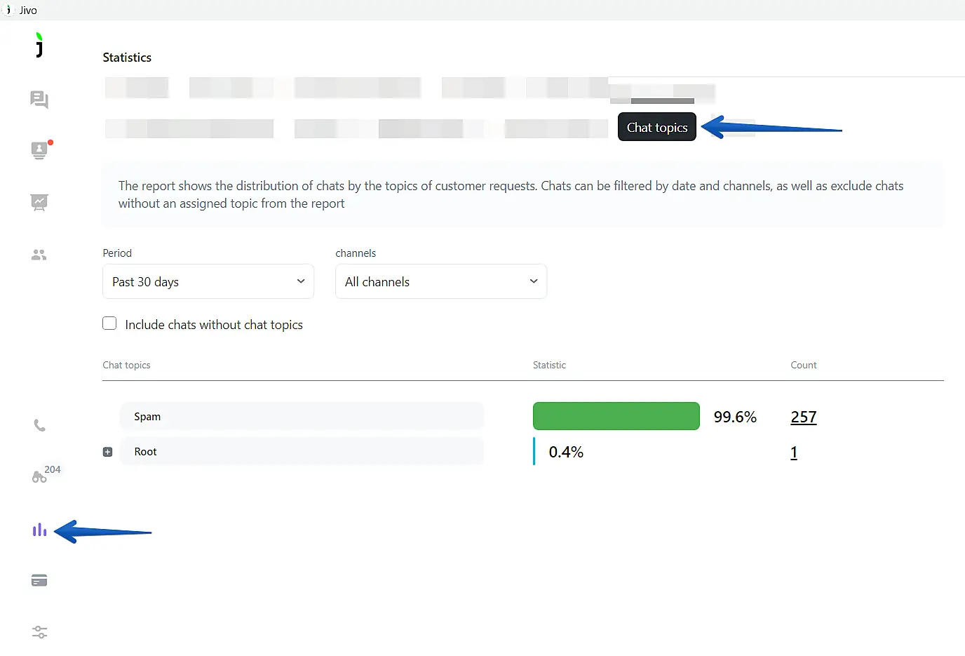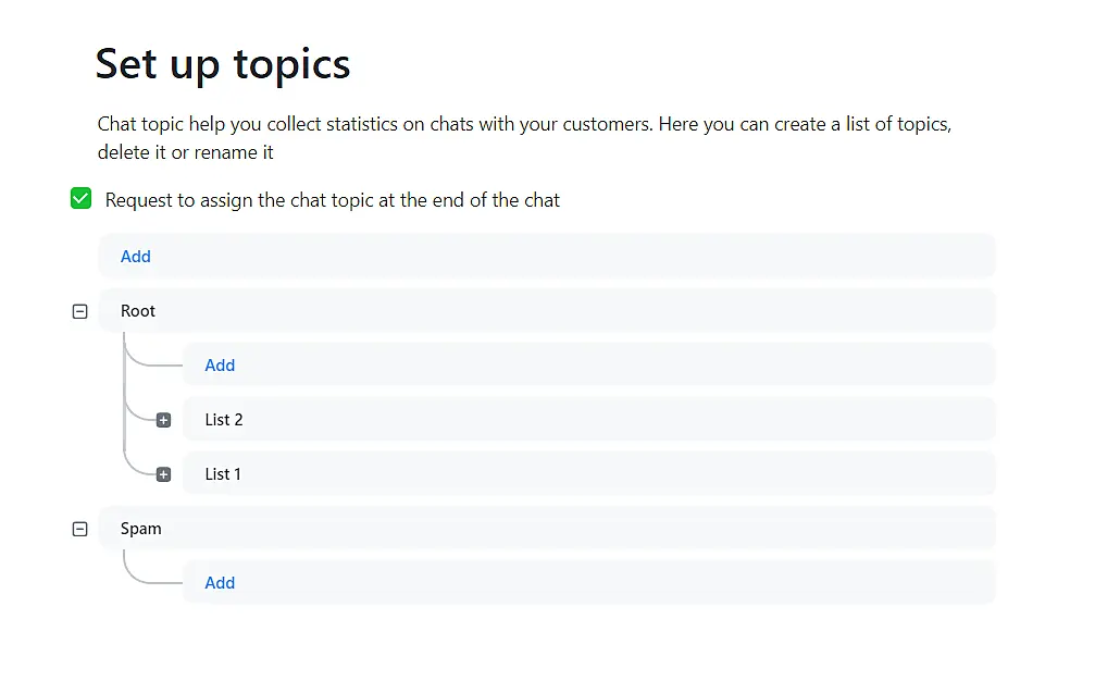 If you want to know and analyze the topics of chats from your customers, then you need to set up the "Chat Topics" functionality.