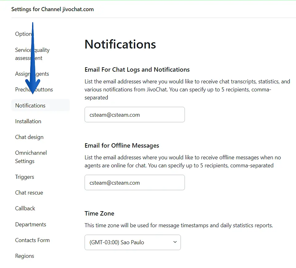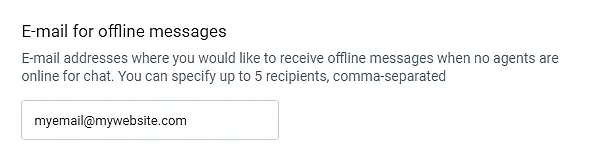 3.E-mail for offline messages - This address will be used for the messages sent by visitors from your website when your agents are not available to chat (i.e. when they are offline or in away mode).