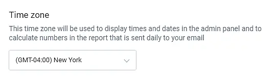 2.Time zone - This time zone will be used to display times and dates in the control panel in the app and to calculate numbers in the report that is sent daily to your email.