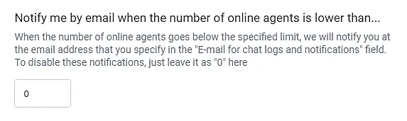 6.If you are an account administrator and want to monitor your agents online presence, you can set up notifications to be sent to your email if the number of online agents is less than a specified number.