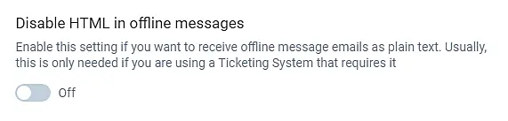 7.If you work with a ticket systems (i.e. helpdesk systems, CRM, etc.), we recommend that you enable the "Disable HTML in offline messages" option.