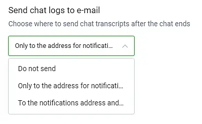 To the notifications address and to the agent - if you select this option, the chat logs will be sent to the agent's email (who participated in the chat) and to the address for notifications.