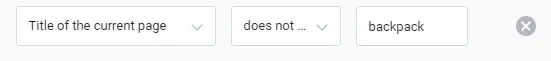 And the most important condition for the invitation is the necessary title of the page: a "backpack" for example. The condition looks like: if the "Title of the current page" contains a "backpack", then the action will be executed on this page.